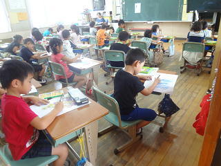 1学期ももうすぐで終わり・・・。どの学年も確かめのテストが行われています。子供たちはこれまで学んだことを確かめたり、思い出したり・・・・。真剣に取り組んでいましたよ。