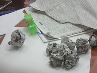 新聞紙を丸めて・・・思い思いにお菓子やケーキ作り・・・。子供たちは夢中で制作していましたよ。
