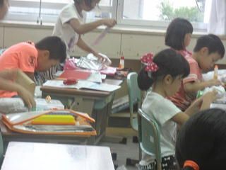 ファイル帳にまとめのプリントを丁寧にとじて、1学期のプリントとともに学習内容を確認していました。1学期のまとめがさまざまな教科で行われていますよ。