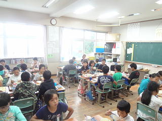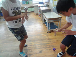 お昼は激しい雨・・・。6年生はそれぞれの時間を楽しく過ごしていましたよ。坊主踊りの練習・・・剣玉・・・・フルーツバスケット・・・・等、みんなで工夫して遊んでいましたよ。