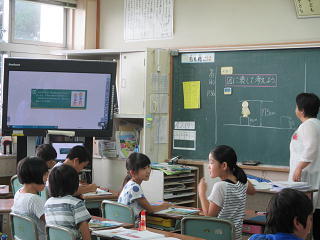 今日はこれまでの学習のたしかめ・・・電子黒板で確認しながら、たしかめの問題に懸命に取り組んでいましたよ。