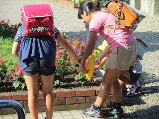 天気になって・・・6年生は草取り等の屋外のボランティア・・・1年生や2年生は水やり・・・を懸命に行っていましたよ。