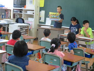 読み聞かせに行きました。大活躍です。1年生は嬉しそうにお話に聞き入っていましたよ。