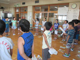 1学期最後の登校班長会・・・ふり返りを行い、安全な登校を確認しました。また、班長としてのこれまでの頑張りにお互いに拍手を送りあいましたよ。