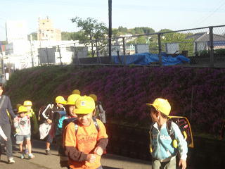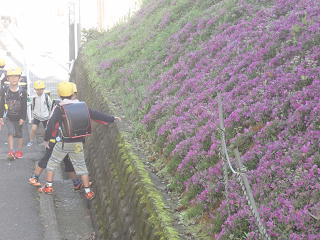 昨日の雨が一転!爽やかな青空が広がりました。子供たちは芝桜の咲く坂道を元気に登って登校しましたよ。