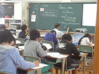 電子黒板での説明を聞いたり・・・黒板での先生と答えを探ったり・・・。意欲的に取り組んでいましたよ。