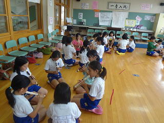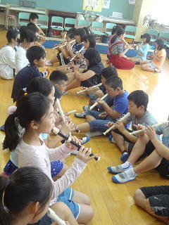 リコーダーの指使いをお互いに教えたり・・・、尋ねたり・・・。そのやりとりの中でお互いを分かり合っていくようでした。「ありがとう」の声も上がり爽やかな風が流れていましたよ。