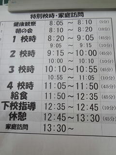 今日から家庭訪問が始まりました。学校の校時程もこの時期は変わります。保護者の皆様、宜しくお願いいたします。