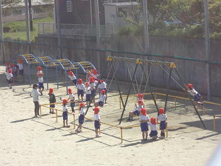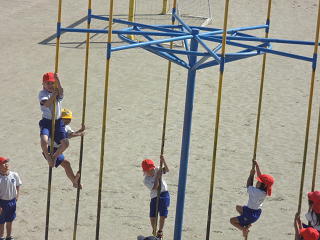 運動場に行き、登り棒に登ったり・・・おにごっこをしたり・・・大空の下で張り切って活動していましたよ