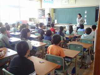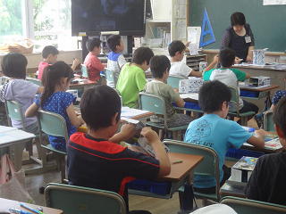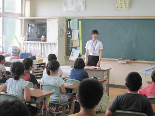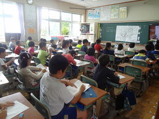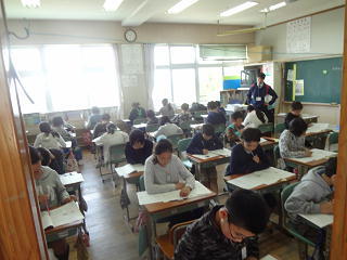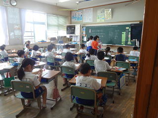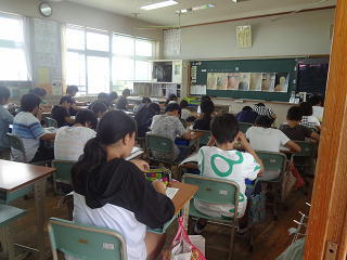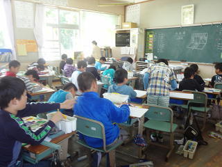 今日は5年生の学級で授業が行われました。子ども達も一所懸命に話を聞いていました。
