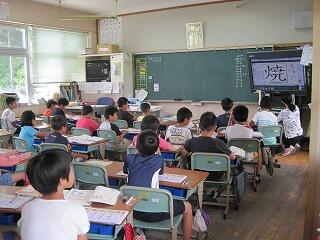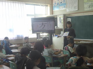 4年生の教室では、電子黒板を使って漢字の書き順を学んでいました。