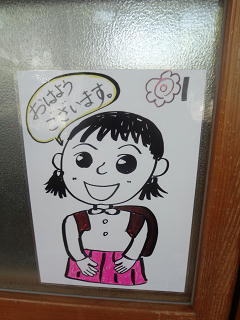 1年生のそれぞれの教室入り口には、こんなにかわいいお友達が出迎えていますよ。
