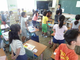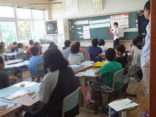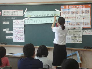 教育実習の先生の研究授業が行われました。たくさんの資料が提示され、詳しくて分かりやすい説明・・・子供たちは頷きながら熱心に学習を進めていました。