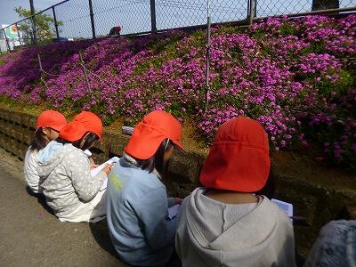 毎朝みんなが登校する西門には、こんなにきれいな芝桜が咲いていました。