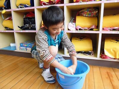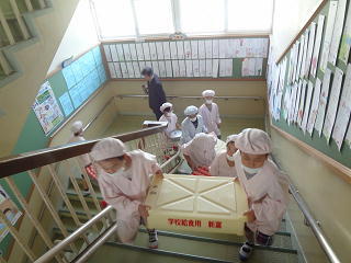 給食当番にもずいぶんと慣れて、手際よく配膳する姿が見られ出しました。給食着も上手にたためると気持ちいいね。