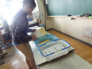 きめられた場所に様々な提出物や宿題等をてきぱきと出していました。そして、ボランティア活動や1年生のお世話に出発していましたよ。