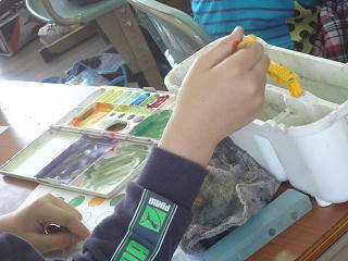 さまざまな色を作り、その組み合わせ等を考える学習が展開されていました。この技を使ってどんな作品が出来上がるか楽しみです。