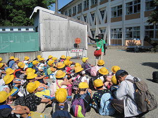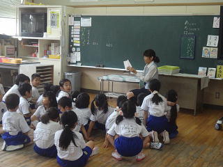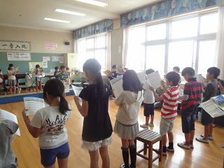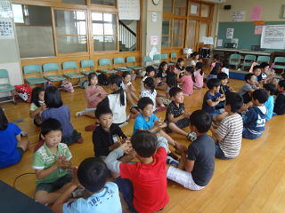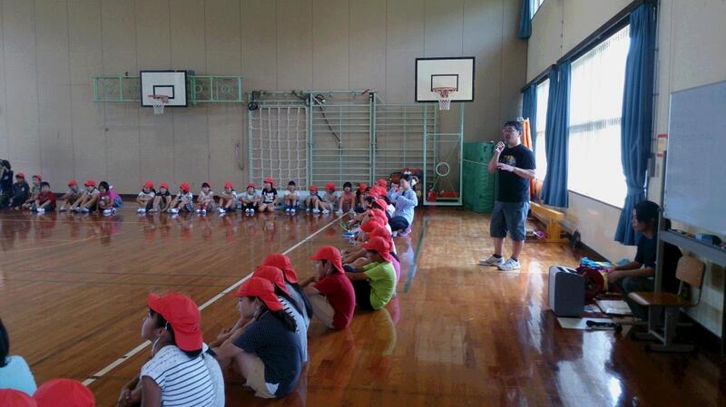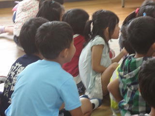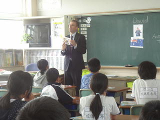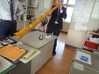 オ―ストラリアから来られたデイビット先生との活動を楽しんでいました。今日、先生はオーストラリア原住民アボリジニの楽器をもってこられていました。子供のみならず、先生方も興味しんしんの様子でした。