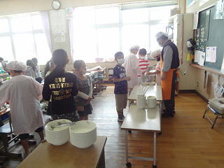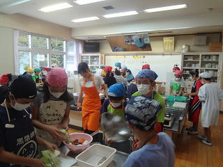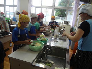 栄養教諭と学級担任の先生の指導での調理実習・・・みんな楽しそうに取り組んでいましたよ。