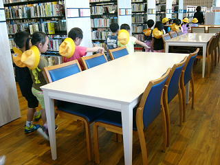 図書室では、たくさんの本があり子どもたちは、たくさん借りたいと喜んでいました。