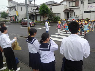 昨日と入れ替わり、新しいメンバーでの2日めのあいさつ運動・・・。中学校の生活委員会のみなさんのアイディアで「あいさつgood」カードが準備され、もらった子供たちは大喜び!あいさつの輪は広がりをみせています。