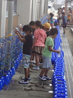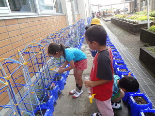 自分たちの育てている植物にたっぷりの水をあげていました。