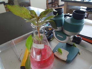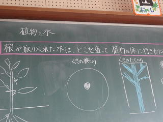 植物の水の取り入れ方の観察を行っていました。顕微鏡を使ったりして興味しんしんの様子でした。