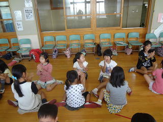 ペアで「茶摘み」の歌をうたいながら手を合わせて活動・・・。楽しそうでした。