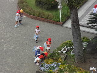 学校内にある植物やお花や木・・・探検の始まりです・・・。