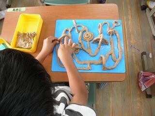 動物やお人形・・・いろいろなものを作っていました。お互い見せ合ったり、のぞきあったり・・・、楽しそうでしたよ。