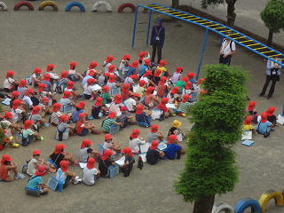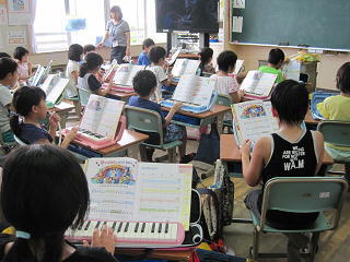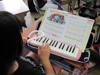 音楽室での授業にドキドキ・・・、ワクワク・・。「小さな世界」を大きな声で歌っていました。いまにもミッキーやミニ―が出てきそうな楽しい歌声でしたよ。