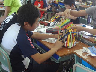 籠作りに挑戦中!難しいようですが、楽しんで行っていました。