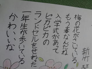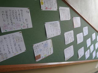 5年生の詩が絵を交えた作品として掲げてあります。感受性豊かな作品の数々です。