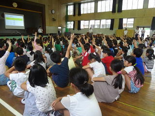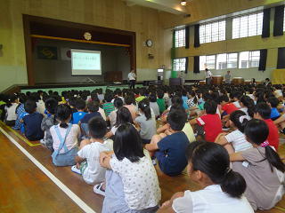 命について教頭先生、そして生徒指導の先生から大切なお話がありました。子供たちはさまざまな投げかけに答えながら、命についてお話を真剣に受け止めたり、懸命に考えたりしていました。