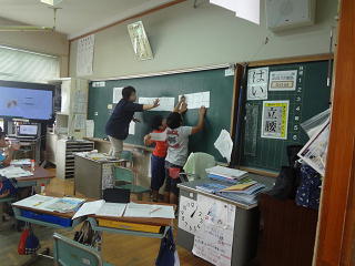 自分たちの学校をきれいにしようと進んで掃除に励んでいましたよ。1年生の教室にいってやさしくお世話している6年生もいますよ。頼りになる6年生です。