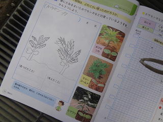 自分たちで植えたほうせんかの観察!理科ノートに特徴を記しながら成長の様子を記録していました。いろいろな驚きや発見があったようです。