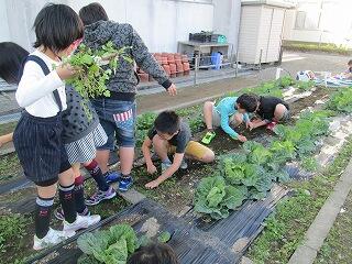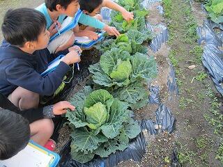 キャベツの観察をした後、雑草取りをしました。いつの間にか、キャベツも雑草も大きくなっていました。