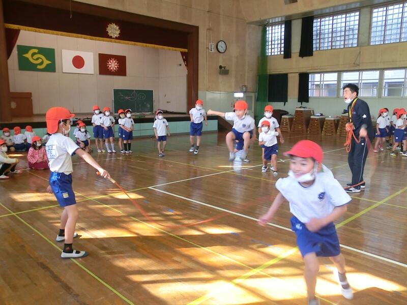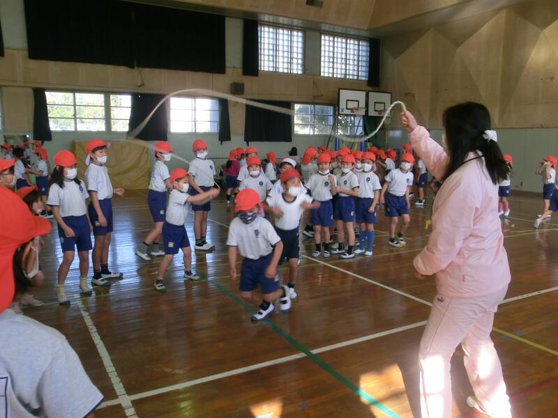 寒い日が続きますが、2年生は、なわとびでいろいろな跳び方ができるように