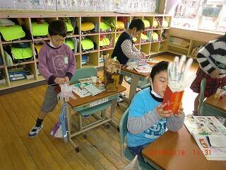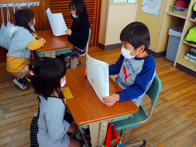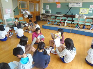6年生のおにいさんやおねえさんが読み聞かせを行ってくれています。みんな夢中できいているようです。