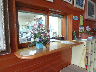 転出入の手続き等に来られる方、様々なお客様、保護者や子供たち等を優しいお花が迎えます。