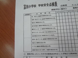 職員で校内の安全点検を行いました。子供たちが安全に学校生活を送れますように・・・と願いを込めました。