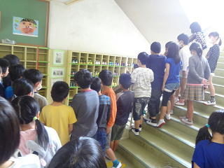 講堂へ行き、地震の被害がないことを確認して体育の活動を行いました。シャトルランでは懸命に記録更新に励んでいました。みんな必死の取り組みのようでした。