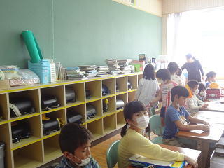 いろいろな係が動き始めました。プリント係は職員室前のボックスに入れてあるいろいろなプリントを運んでいました。張り切って活動しているようです。