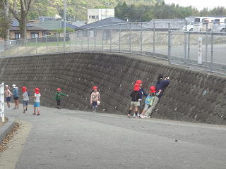 学校の土手では・・・
