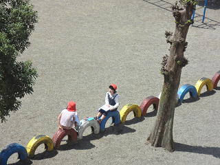 お昼から青空がのぞきました。子供たちは元気に遊んでました。