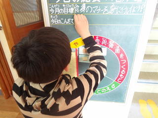給食委員会の子供たちもはりきって活動していました。栄養黒板を記入したり・・・、みんなの後片づけのサポートを行ったり・・・・。自分たちでいろいろなことを考えたり相談したりしながら意欲的に取り組んでいました。頼もしい給食委員のみなさんです。