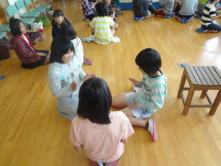 みんなで楽しく遊び歌を行いました。
