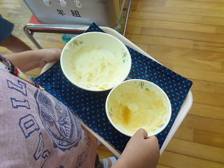 みんなの大好きなカレーでした。みんなペロッと完食!片付けもてきぱきと行っていましたよ。