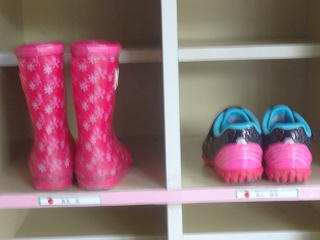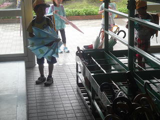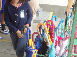 2年生になって初めての雨・・・。新しい傘置き場をみんなで確認し、傘の畳み方、置き方等、一つ一つ学んでいましたよ。