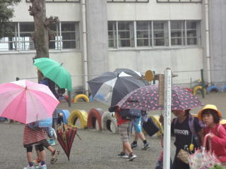 小雨の幕開け!子供たちはお気に入りの傘をさし、元気に登校しました。1年生も傘を決められた場所にきちんと並べていましたよ。